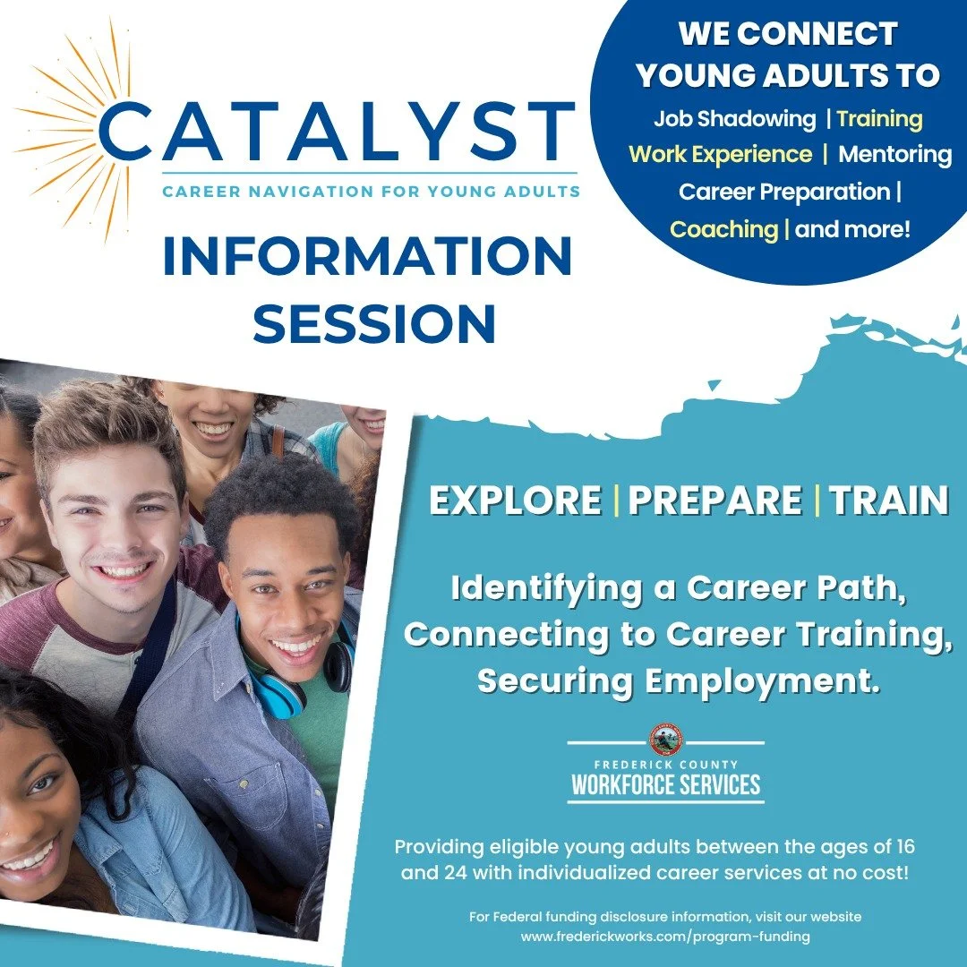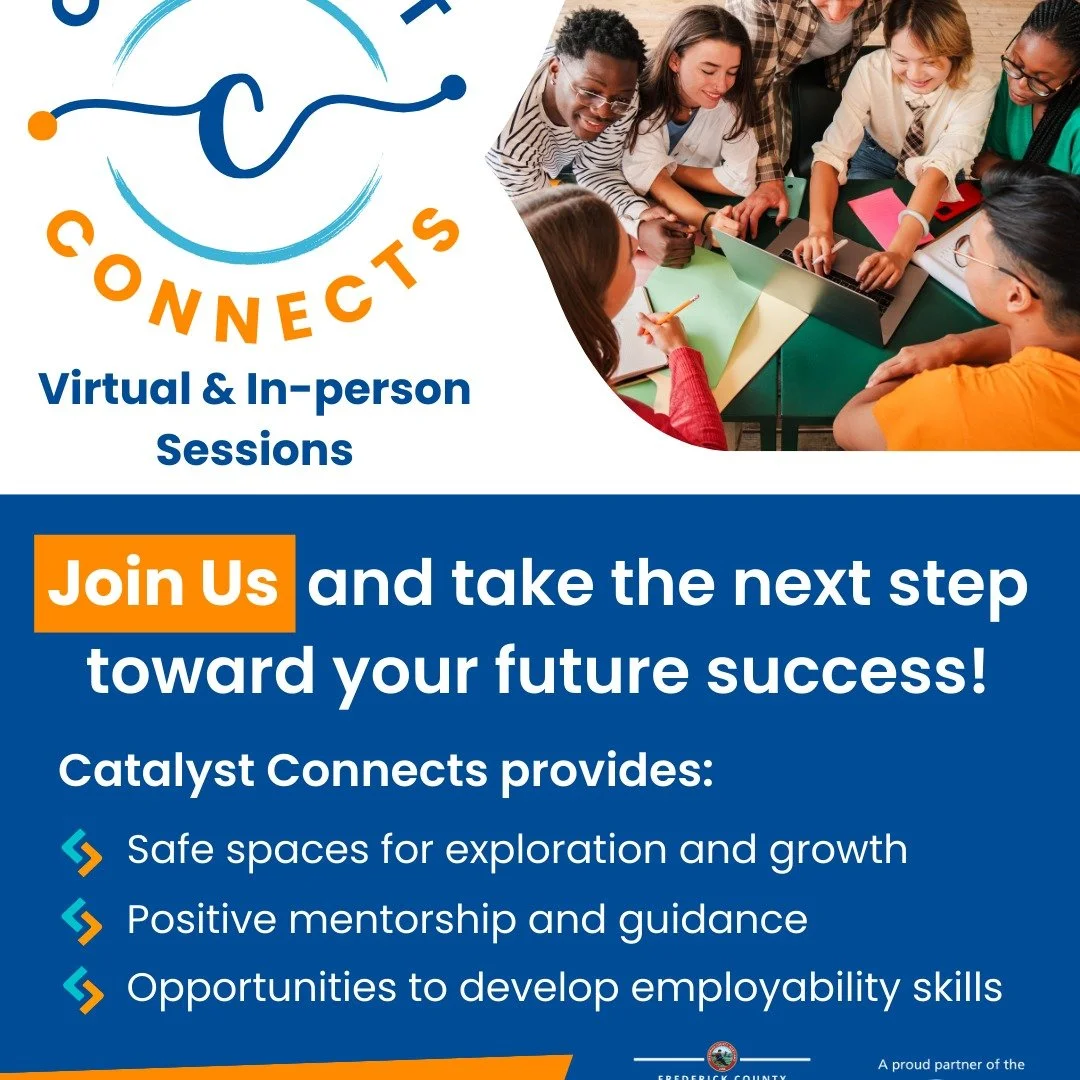 Catalyst Connects offers a vibrant space for Frederick County youth (ages 16-24) to connect with peers and gain essential professional skills. Each hour-long session covers a different career topic, providing valuable insights and practical knowledge to support your professional journey. Don't miss this chance to enhance your career development!
